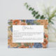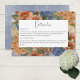 Ce design simple mais élégant de carte de détails de mariage comprend un bel assortiment d'hydrangées aquarellées et d'autres fleurs de bleus périwinkle poussiéreux, rouille claire et foncée, et crème avec verdure. Le texte s'affiche sur un arrière - plan blanc voûté. L'arrière - plan est un doux bleu terne poussiéreux qui est affligé de blanc. Ce design fait partie de la série de cartes Rustic Blue & Burnt Orange Rust Floral Monogram mariage. Créé par Simply Farmhouse Press.