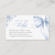Sweet books for baby insert card for a winter baby shower. Designed with a soft blue bow and snowflake accents. A thoughtful way to build baby’s library with love.