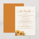 Modern rustic boho floral watercolor sunflowers ivory cream terracotta wedding guest information details invitation insert card with a simple handwriting typography script.