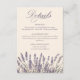 Cette élégante carte de détails mariage monogrammée florale simple présente des fleurs de lavande délicates et un arrière - plan chaleureux. Personnalisez cette belle carte de détails mariage avec votre propre texte et code QR.