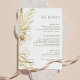 Aquarelle tendance blanc floral, palmier tropical bronzé, feuillage désert terreux, et pampas détails de la faire-part de mariage insérer carte modèle avec typographie de style moderne sur un arrière - plan blanc clair. +++++++ Convient pour un jardin bohème d'été. ferme rustique ou plage de destination élégante mariage contemporaine classe.