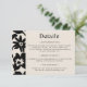 Faites une déclaration avec cette carte de détail mariage floral noir et crème gras et graphique. Le contraste saisissant entre le design floral et le design moderne attire l'attention, parfait pour les couples qui veulent mettre en valeur leur style unique. Donnez le ton pour une fête mémorable avec cette carte de détails inoubliable.