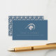Cette carte d'enceinte botanique contemporaine présente une composition minimaliste et une typographie simple en bleu et blanc avec un motif floral élégant sur le dos.