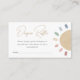 Entrez dans un monde de fantaisie et de charme avec notre Boho Sun Diaper Raffle Enclôture Card! Chaleur et joie rayonnantes, cette aquarelle peinte à la main est ornée d'une pièce centrale au soleil chéri avec un motif assorti sur le dos. Célébrez l'arrivée imminente de votre petit lot de joie avec notre style de baby shower boho amusant et charmant. C'est le moyen idéal de rassembler les êtres chers et de se prélasser dans le souffle de l'anticipation.