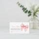 Carte de boîtier de couches de papier rose pâle - Invités Invitations à joindre le plaisir avec cette adorable carte de tombola de couche avec un arc rose doux. Parfait pour un baby shower, encourageant les invités à apporter des couches pour une chance de gagner un prix. *** Veuillez saisir H112 dans la recherche de magasin pour trouver tous les articles correspondants *** Ou visitez notre collection de Baby showers de boue rose. *** Ce design de haute qualité est facile à customiser pour correspondre à vos couleurs, styles et thèmes mariages. Pour plus de personnalisation, cliquez sur le lien "Modifier en utilisant l'outil de conception" et utilisez notre outil de conception pour modifier ce modèle. Si vous avez besoin d'aide ou d'articles correspondants, veuillez me contacter.