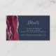 Le bord gauche de cette élégante carte de boîtier de site Web mariage moderne comporte une bordure d'aquarelle bordeaux et ornée d'une parties scintillant en faux argent. Le titre apparaît en écriture manuscrite gris argenté, avec le texte personnalisable ci-dessous en police de cuivre sur un arrière - plan bleu marine. L'envers est assorti d'un design d'agate bordeaux et argenté.