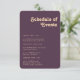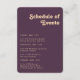 Ce programme rétro violet d'événements bordures arrondies carte d'enceinte est parfait pour votre simple vintage, coloré mariage d'été boho tropical. Sa police bohème unique du milieu du siècle donne à ce design une ambiance minimaliste super hippie classique. Si vous cherchez un design qui présente des couleurs vives et audacieuses pour votre mariage de plage créatif des années 70, ce produit, et sa collection de mariages coordonnés, sont précisément ce que vous cherchez. N'hésitez pas à modifier la couleur pour ajouter vos propres illustrations, graphiques ou photos. Si vous avez des questions sur la conception de ce produit, n'hésitez pas à nous contacter !