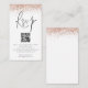 Carton de réponse en ligne de mariage avec code QR à paillettes or rose et écriture élégante. Une bordure de paillettes fausses est présente en haut des deux côtés avec une écriture élégante pour l'en-tête. Remplacez le code QR par celui de votre page de réponse sur votre site web de mariage pour offrir une option de réponse pratique à vos invités. Pour créer un code QR, recherchez en ligne "générer un code QR"