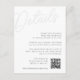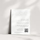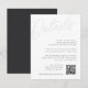 Carte tout-usage pour vos invitations de mariage, cette petite carte de détails fournit trois champs de texte personnalisés pour vos détails de mariage, le site Web, et un code QR pour les RSVP ou des informations supplémentaires. Conçu pour correspondre à notre collection de mariages Script Watermark. Notre colorway de cendres fait une déclaration classique avec du noir doux et à peine là du lettrage gris sur un arrière - plan blanc immaculé.
