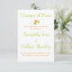 Annoncez que votre mariage a été reporté avec cette carte d'insertion "Changement de plans". Le haut a "Changement de plans" écrit en vert avec un graphique de feuille d'automne en dessous. Il y a ensuite une alternance de polices orange et verte avec vos informations. Personnalisez le vôtre dès aujourd'hui !