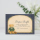 A charming preppy baby shower design featuring a sweet teddy bear dressed in a classic green plaid jacket and bow tie. Above the bear, a delicate clothesline displays tiny baby clothes and shoes, creating a nostalgic storybook nursery scene. The deep navy background and subtle tartan border add a refined, vintage-inspired touch that feels both elegant and playful. Perfect for a stylish baby shower celebration with a classic preppy aesthetic.