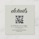Carte de réponse/details de mariage vert sage élégant (couleur personnalisable) avec un code QR ajouté. Personnalisez avec votre photo au verso. Contactez-moi pour obtenir de l'aide pour vos personnalisations ou pour demander d'autres produits Zazzle assortis ou coordonnés pour votre (vos) événement(s).
