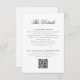 Une carte de détails de mariage élégante et classique comporte un design noir et blanc avec votre blason de monogramme au verso. Personnalisable facilement pour inclure les détails clés tels que les hébergements et les informations pour un site web de mariage et un code QR.