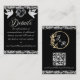 Ce design romantique présente un élégant arrière - plan noir avec des bordures de parties scintillant, un coeur de défilement argenté délicat et des colombes avec des détails pour plus d'informations sur l'avant et le code QR et l'espace réservé monogramme sur l'arrière. Aussi disponible avec différents arrière - plans de couleur pour vos couleurs mariages. (La Parties scintillant est simulée dans l'illustration). Conçu pour coordonner avec la collection Mariage "Two Shall Become One - Hearts, Doves & Parties scintillant". Pour modifier les détails, cliquez sur "Personnaliser". Pour déplacer le texte ou modifier la taille, la police ou la couleur du texte, cliquez sur "Cliquez pour customiser plus loin"