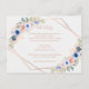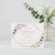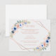 Carte de détails de mariage moderne, florale et géométrique. Dans les couleurs rose doré, pêche et bleu.