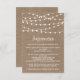 Simple mais élégant, les lampes à cordes de la collection rustique mariage burlap est un design étonnant avec de belles lumières à cordes blanches suspendues sur un arrière - plan effet burlap, qui est parfait pour toute célébration mariage rustique. Ces cartes d'encart peuvent être personnalisées pour votre occasion spéciale et rendraient parfait les détails, l'information, l'hébergement, l'orientation, le registre des cadeaux ou la carte de voeux pour votre mariage, douche nuptiale, fête de fiançailles, fête d'anniversaire et bien d'autres occasions spéciales. Ajoutez votre libellé personnalisé à cette conception à l'aide des cases "Modifier ce modèle de conception" situées à droite de l'élément, ou cliquez sur le bouton bleu "Customiser" pour arranger le texte, modifier les polices et les couleurs et ajouter des informations ou des images supplémentaires à cette conception. Les éléments mariages correspondants se trouvent dans la collection.