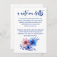 La carte de mariage Pastel Whispers Meadows Collection, au design à écran plat, allie élégance douce et fonctionnalité. L'avant de la carte donne le ton avec ses nuances pastel subtiles et ses délicats motifs floraux sur le bord inférieur. Le dos de la carte devient une toile pour la touche unique du couple. Le texte personnalisable permet l'inclusion de suggestions de cadeaux spécifiques ou d'informations sur leur registre de mariages. Cette fonctionnalité simple mais personnalisée transforme la carte en un outil utile et pratique. Le caractère pratique du texte personnalisable devient évident puisqu'il guide les invités à choisir des cadeaux réfléchis qui correspondent aux préférences du couple. Cette personnalisation, dans les contraintes d'un design plat, transforme la carte en une pièce de communication précieuse, assurant que les cadeaux ne sont pas seulement élégamment choisis mais aussi soigneusement conçus pour améliorer la nouvelle vie du couple ensemble. Essentiellement, la carte à plat mariage de la collection Pastel Whispers Meadows devient une petite mais puissante expression du style du couple, transmettant la gratitude tout en invitant subtilement les proches à contribuer de manière significative à la joyeuse célébration.