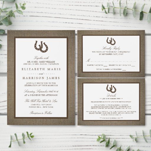 Carte D'accompagnement Country Rustic Horseshoe Sur Burlap Mariage