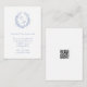 Cette élégante carte de réponse QR Code de mariage avec couronne botanique en monogramme bleu poussiéreux avec les initiales des mariés à l'intérieur d'une belle couronne botanique romantique et élégante serait parfaite pour accompagner votre invitation de mariage et carte de réception. Le blason classique avec les initiales des mariés est élégant et romantique. Le texte est traditionnel mais moderne et les polices sont exquises. Il sera très facile pour vos invités de répondre à votre mariage. Il est très facile de personnaliser cette carte. Il suffit de sélectionner "Personnaliser ce modèle" et de saisir vos informations. En quelques secondes, vous pouvez voir vos cartes de réponse de mariage uniques.