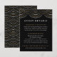Vous avez un thème de mariage Gatsby le Magnifique ? Fournissez à vos invités tous les autres détails spécifiques du mariage. Cette carte de détails pour invités de mariage art déco présente une conception de guirlandes dorées et blanches sur un fond noir riche et une formulation blanche. Personnalisez-la et faites-en vôtre. Vous pouvez modifier la formulation, la couleur, les tailles. Le dos a un motif art déco et il est parfaitement assorti à la "collection de mariage Art Déco avec guirlandes", à retrouver dans ma boutique zazzle.