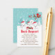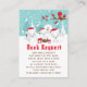 Cette carte de demande de livre mignonne et amusante comprend une adorable famille de renards arctiques dans un cadre merveilleux en hiver avec des arbres enneigés et un oiseau rouge sur une branche avec saint. Les renards aux chapeaux de Santa apportent une touche festive. Dans l'arrière - plan se trouve un ciel vert bleu turquoise et des flocons de neige tombants. Le texte combine les polices décoratives et sans serif pour un look élégant et moderne. C'est parfait pour un baby shower à thème de Noël.
