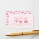 Carte d'insertion de douche de mariée sur le thème de la Saint-Valentin romantique et douce avec une illustration de macarons en forme de cœur rose. La carte demande aux invités de remplir la carte de recette et de l'apporter à la douche. Envoyez cette carte avec la carte de recette correspondante dans ma boutique !
