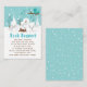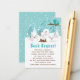 Cette carte de demande de livre mignonne et amusante comprend une adorable famille de renards arctiques dans un cadre merveilleux en hiver avec des arbres enneigés et un oiseau bleu sur une branche avec saint. Dans l'arrière - plan se trouve un ciel vert bleu turquoise et des flocons de neige tombants. Le texte combine les polices décoratives et sans serif pour un look élégant et moderne. C'est parfait pour un baby shower à thème de Noël ou d'hiver.