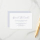 Belle carte de détails pour les invités de mariage avec calligraphie bleue poussiéreuse apaisée, comportant un dos de carte en bleu poudre pastel et un avant en blanc avec un script élégant.