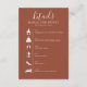Ce simple détail timeline carte boîtier avec un jeu de couleurs en terre cuite comprend minimaliste bleu poussiéreux élégant, code QR rsvp via le site, détails minimes modernes mariage en ligne, détails et informations des invités mariages, ampersand de calligraphie classe simple, réponse des invités internet moderne, adresse web de réponse des invités élégante, informations en ligne élégante sur le site, scannable information de code QR, réponse de quête rsvp