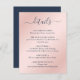 Fournissez à vos invités les détails importants de votre mariage en envoyant cette carte élégante d'invitation de mariage bleu marine et rose avec une police d'écriture moderne. Articles assortis disponibles.