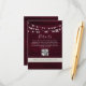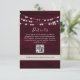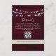 Bohème, élégant, campagne, guirlande lumineuse sur bois rustique carte de détails de mariage en marsala burgundy avec code QR et site web.