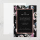Cadre doré rose faux gras entouré d'un motif floral abstrait moderne classique dans des tons sombres de bordeaux, rose, bleu, gris et noir, élégant et stylé. Jolies cartes de détails de mariage pour un mariage moderne classique en automne ou en hiver.