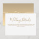 Gardez votre suite de mariage propre et raffinée avec cette simple et élégante carte de détails de mariage blanche. Conçue dans un style minimaliste moderne, elle présente un cœur de corde dorée romantique qui ajoute une touche subtile de charme. Parfaite pour partager des informations essentielles comme les hébergements, les directions ou votre site web de mariage, cette carte complète tout thème de mariage sophistiqué ou contemporain.
