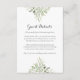 Carte D'accompagnement Détails d'hébergement de mariage Greenery Script