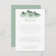 Cette carte d'enceinte de détails de mariage campagnard de montagne vert est parfaite pour un mariage rustique. L'aménagement comprend une aquarelle peinte à la main dans la montagne verte, inspirée d'un thème campagnard.