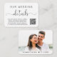 Elégante carte de détails de mariage avec "détails" dans un script de calligraphie élégant avec des swashes. Entrez l'adresse de votre site Web mariage pour créer un code QR que vos invités peuvent scanner afin d'obtenir tous les détails de votre mariage, tels que les itinéraires et les hébergements. Au dos, votre photo est superposée avec vos noms et la date mariage réunis par un coeur.