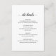 Simple noir et blanc mariage détails carte d'enceinte avec les mots, "les détails" dans un script élégant avec des swashes. Cette carte d'enceinte moderne et minimaliste offre beaucoup d'espace si vous avez besoin de fournir beaucoup d'informations importantes pour vos clients mariages.