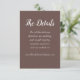 Couleur taupe tendance, carte d'enceinte mariage verticale avec blanc, script stylisé qui donne les instructions pour trouver tous les détails du mariage du couple sur leur page Web mariage. Customisez votre carte de boîtier en modifiant le texte souhaité et en remplaçant le nom de la page Web par le vôtre.