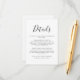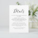 Caractérisé par un en-tête de style signature, cette élégante carte d'information pour les invités noir et blanc peut être personnalisée avec les informations de vos invités dans une écriture chic. Conçu par Thisisnotme©