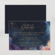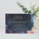 Complétez votre ensemble de mariage sur le thème céleste avec la carte de détails Celestial Waters Midnight Blue. Conçue pour correspondre à l'invitation coordonnée, cette carte présente un fond bleu nuit profond orné d'accents numériques de couleur or (veuillez noter : pas de véritable feuille d'or), évoquant l'atmosphère rêveuse d'un ciel étoilé.