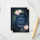 Carte de détails d'invitation de mariage floral géométrique bleu marine foncé avec un élégant bouquet de bleu marine, bleu roi, blanc, rose églantine et feuilles d'eucalyptus vert sauge et un cadre géométrique neutre à paillettes élégant. N'hésitez pas à me contacter pour toute aide de personnalisation ou si vous avez besoin d'un autre produit avec ce design.