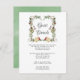 Cartes de détails pour les invités d'un mariage avec un fond de lessive à l'aquarelle vert sauge, avec des pins rustiques enneigés et des fleurs d'épicéa à l'aquarelle.