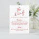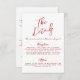 Simple manuscrit Whimsical Red Détails Mariage Carte de boîtier. Cette carte de boîtier de détails mariages présente un design simple et minimaliste dans un thème rouge avec texte manuscrit pour un look moderne et accessible. En haut de l'avant, "The Details" s'affiche dans un grand style manuscrit, ajoutant une touche amusante et unique. Le jeu de couleurs rouge fait de cette carte un excellent ajustement pour les mariages nautiques ou d'inspiration Nantucket, ou il peut facilement se mélanger et correspondre avec d'autres invitations avec des tons rouges. Entièrement personnalisable, vous pouvez modifier les couleurs en fonction de votre thème mariage et de vos préférences. La carte offre un espace pour les informations mariages essentielles, y compris les détails de la réception, les directives vestimentaires, l'hébergement, le transport et les notes supplémentaires ou un site Web mariage. Parfait pour les couples à la recherche d'un moyen propre et élégant de partager des détails importants avec leurs invités, cette carte est disponible en version imprimée ou en téléchargement numérique pour plus de commodité.