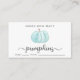 Jolie carte de jeu pour votre bébé garçon douche avec "Devis Combien de Citrouilles" écrit dans une simple typographie grise et un script élégant avec des swashes et une aquarelle d'un citrouille bleu pastel. Placez un bocal ou une bouteille remplie de citrouilles de bonbons sur une table et demandez à vos invités de deviner combien sont dans le bocal. Le gagnant sera l'invité qui se rapproche le plus sans passer par là. Une affiche correspondante est disponible dans notre Sweet Little Citrouille Baby Boy Shower Collection.