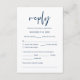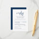 Il s'agit de la belle carte de boîtier Modern, Calligraphy, Elegant RSVP (Respond), en police bleu marine, où vous pouvez modifier, modifier la couleur et le format selon vos besoins de conception, avec options de repas, sièges réservés, nombre de participants et option de demande de chanson. #TeeshaDerrick