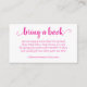 CARTE DE REQUÊTE DE LIVRE : Playful 1980s inspiré ultra brillant bulle gum magenta et néo fuchsia rose "apporter un livre" baby shower ou genre révéler carte de boîtier de soirée avec un script amusant et décontracté écrit à la main. Le design classique comprend une typographie moderne de citation à main superposée avec un poème : "Une seule demande et nous espérons que ce n'est pas difficile | apportez à votre bébé un livre au lieu d'une carte | en signant votre nom, nous nous rappellerons et partagerons | votre cadeau spécial même lorsque vous n'êtes pas là" Pour d'autres couleurs ou des produits assortis, visitez le magasin JustFharryn Zazzle, ou contactez le concepteur, c/o Fharryn@yahoo.com Tous droits réservés. #bohochic #zazzlemade