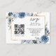 Carte D'accompagnement Dusty Blue Gold Pastel Floral QR Code Mariage RSVP