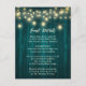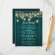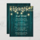 Fournissez à vos invités les informations importantes avec cette carte d'annonce de mariage rustique sarcelle avec des guirlandes lumineuses sur un fond de bois de grange. Articles assortis disponibles.