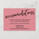 Offrez à vos invités des cartes pratiques pour les aider à se souvenir de vos arrangements d'hébergement mariage et d'autres détails avec cette carte moderne. Un texte décontracté qui recouvre le graphique "logements" a été conçu à l'aide d'une police manuscrite moderne. Utilisez les champs modèles pour customiser ces cartes de boîtier avec vos données personnelles. Vous pouvez changer l'arrière - plan à n'importe quelle couleur que vous préférez. N'hésitez pas à contacter si vous avez des demandes spéciales. // 100 //