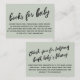 Voici une option simple pour vos besoins de demande de carnet de baby showers. En utilisant une police d'écriture moderne, j'ai placé des graphiques en haut de chaque côté avec ces messages, "livres pour bébé" et "merci d'aider à construire la bibliothèque de bébé". Sur le devant, j'ai écrit un verset décalé, et un message amical et explicatif pour le dos. Utilisez mon original, ou remplacez-les par l'une des nombreuses autres options disponibles en ligne à votre gré. D'autres pièces de coordination sont également disponibles. // 100 //